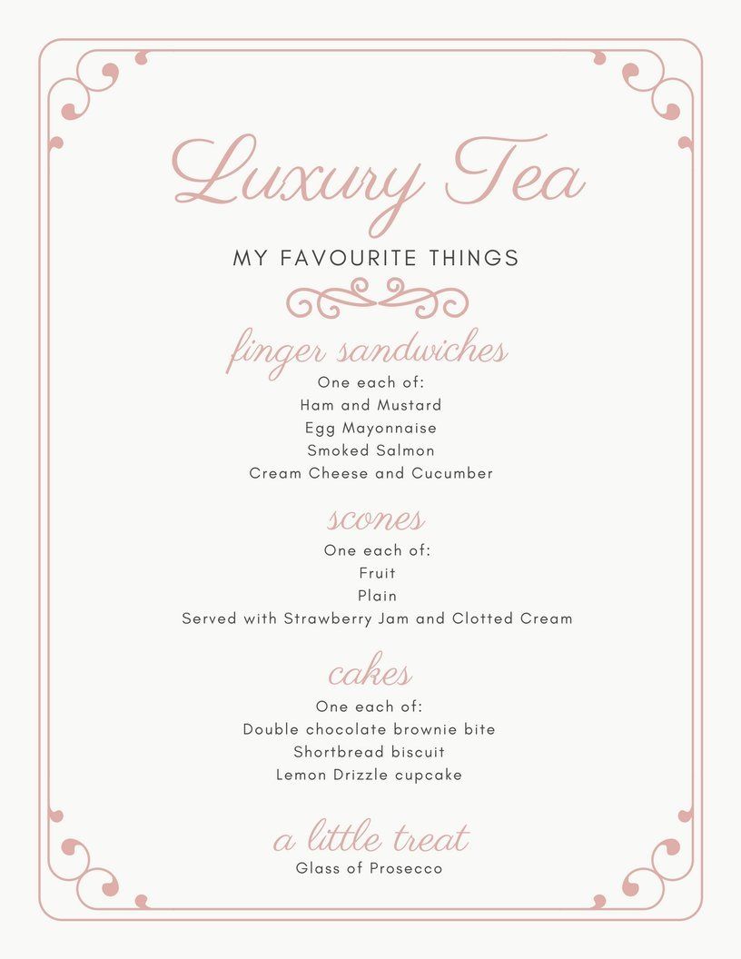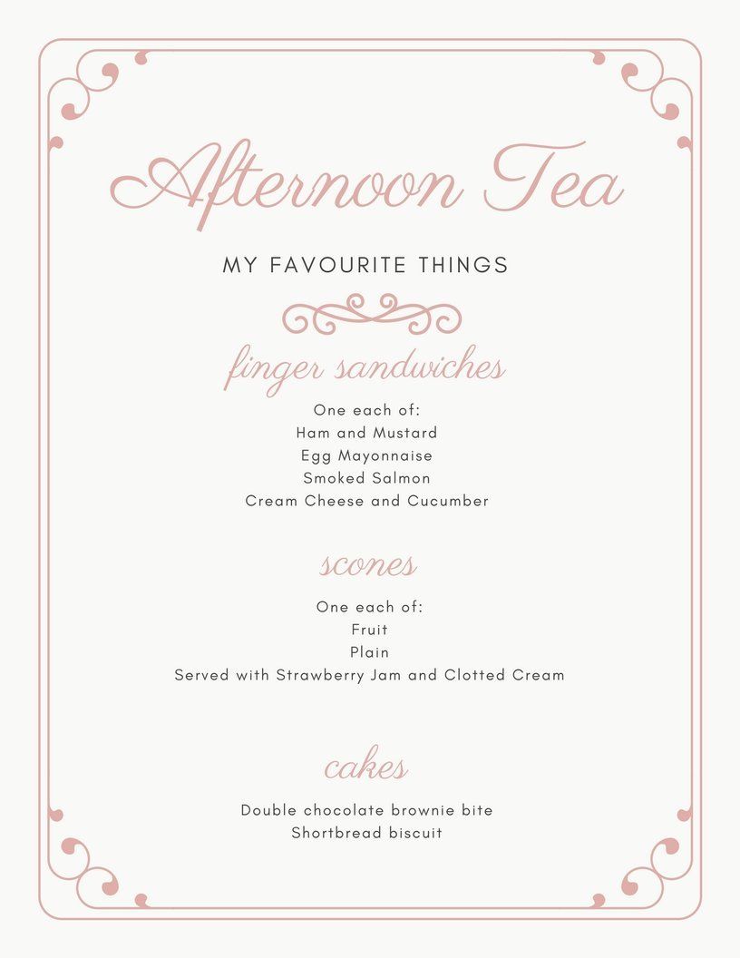 The above menus are for parties. All afternoon teas are homemade and served with a selection of teas, coffee, apple & orange juice and fruit squash.